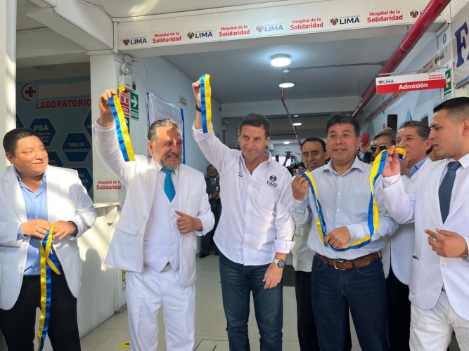 El alcalde limeño conversó con la prensa momentos después de inaugurar el Hospital de la Solidaridad Nº 56, ubicado en la avenida Riva Agüero del distrito de El Agustino. Se trata de un moderno centro de salud, dotado de equipos médicos de última generación. A la ceremonia asistió Richard Soria, alcalde de El Agustino.