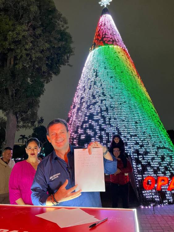 Que el árbol navideño nos dé luz en tiempos difíciles y unión en medio de nuestras diferencias, señaló en la ceremonia de encendido de luces del hermoso árbol navideño instalado en el Circuito Mágico del Agua, del emblemático Parque de la Reserva.
