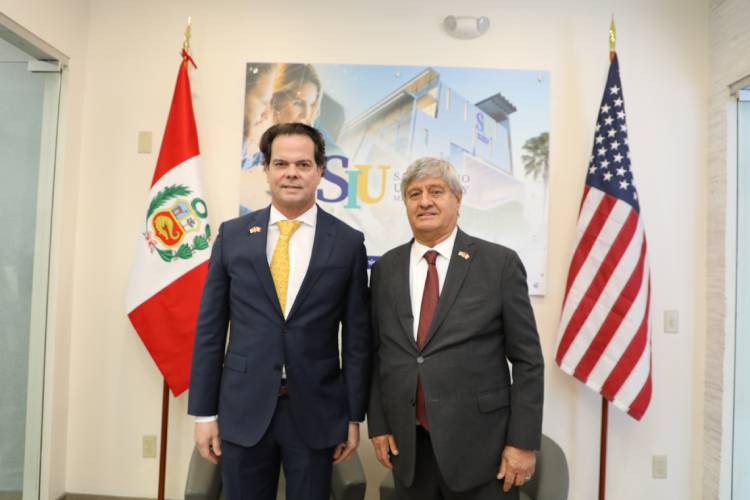 A pocos días de asumir funciones en Perú, el embajador Berni Navarro visitó en Miami las instalaciones de San Ignacio University (SIU), la primera universidad de capitales peruanos acreditada y licenciada para operar en Estados Unidos.