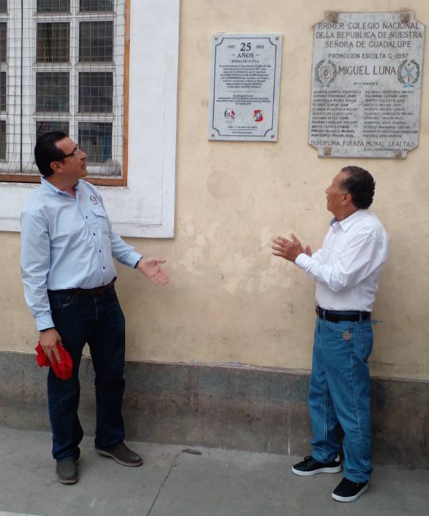 La sangre celeste y cálida familia guadalupana,asistimos a otro patio de gratos recuerdos,donde se develó una placa recordatoria,en la Galeria de Promociones,brillando las "Bodas de Plata Promoción 1,997"-Niño héroe Manuel Bonilla.Y teniendo como Padrino a Don Manuel Walter Miñano.