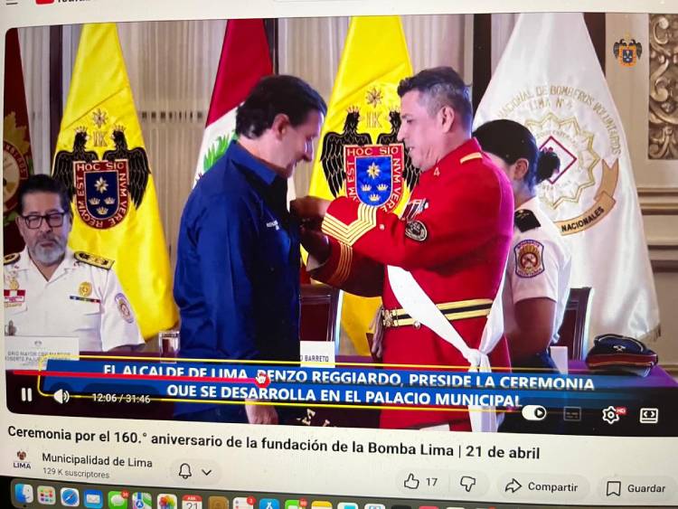 Reggiardo Barreto hizo declaraciones momentos después de participar en una ceremonia por el 160 aniversario de fundación de la histórica Bomba Lima, que se llevó a cabo en el Salón de los Espejos del Palacio Municipal. Allí fue condecorado por su apoyo al Cuerpo General de Bomberos del Perú.