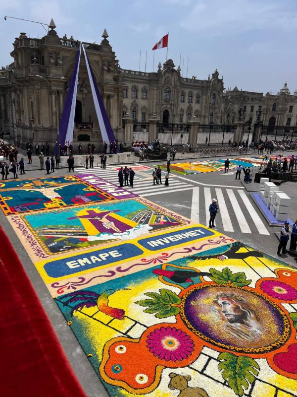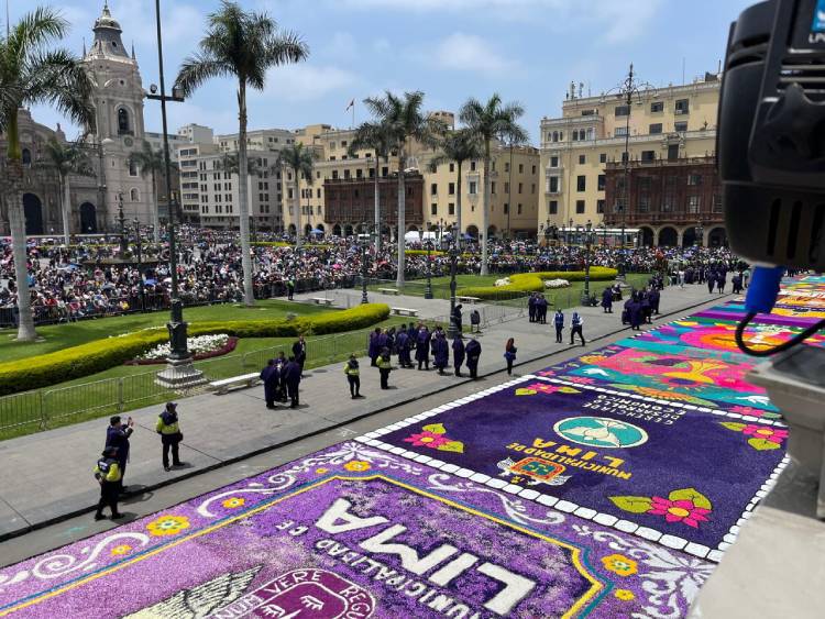 El ingreso a la Plaza de Armas se hizo entre cánticos, sahumerio, alfombras, valsecitos criollos y abigarrada multitud que oraba con fe, pidiéndole al Señor que los ayude a superar las enfermedades y que oriente a las autoridades nacionales a lograr la estabilidad del país y a devolverle la paz, en medio del incremento de la delincuencia, la extorsión y el sicariato.